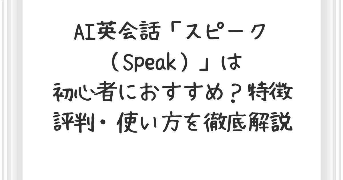 この記事では、スピークの特徴・料金・口コミ・他社との違いをわかりやすく解説します。