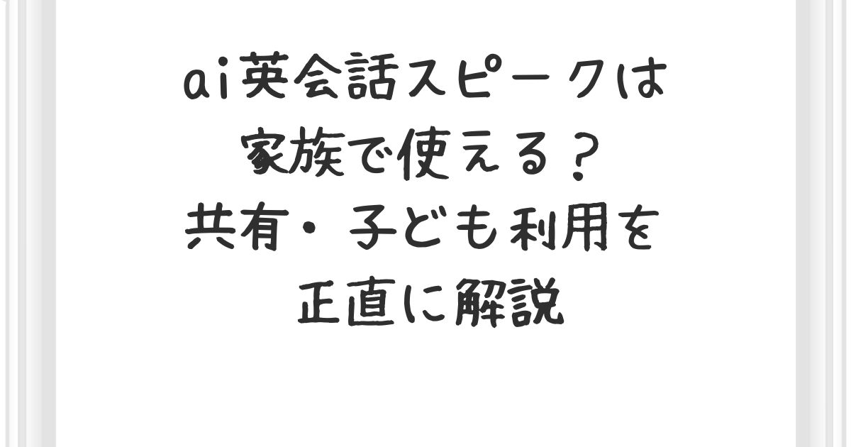 この記事では、ai英会話スピークが家族で使えるのかを、事実ベースで整理し、向いている家庭・向いていない家庭を分かりやすく解説します。