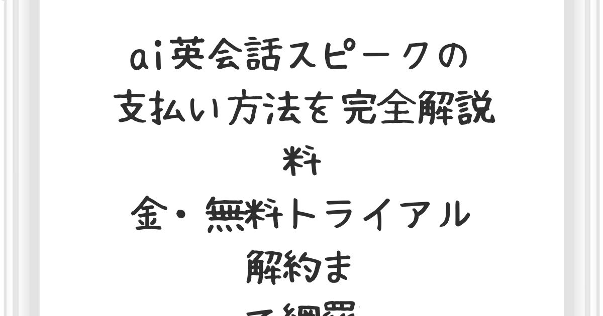 この記事では、ai英会話スピークの支払い方法を中心に、無料トライアルの注意点、料金プランの違い、解約や支払い停止の方法までを分かりやすく解説します。